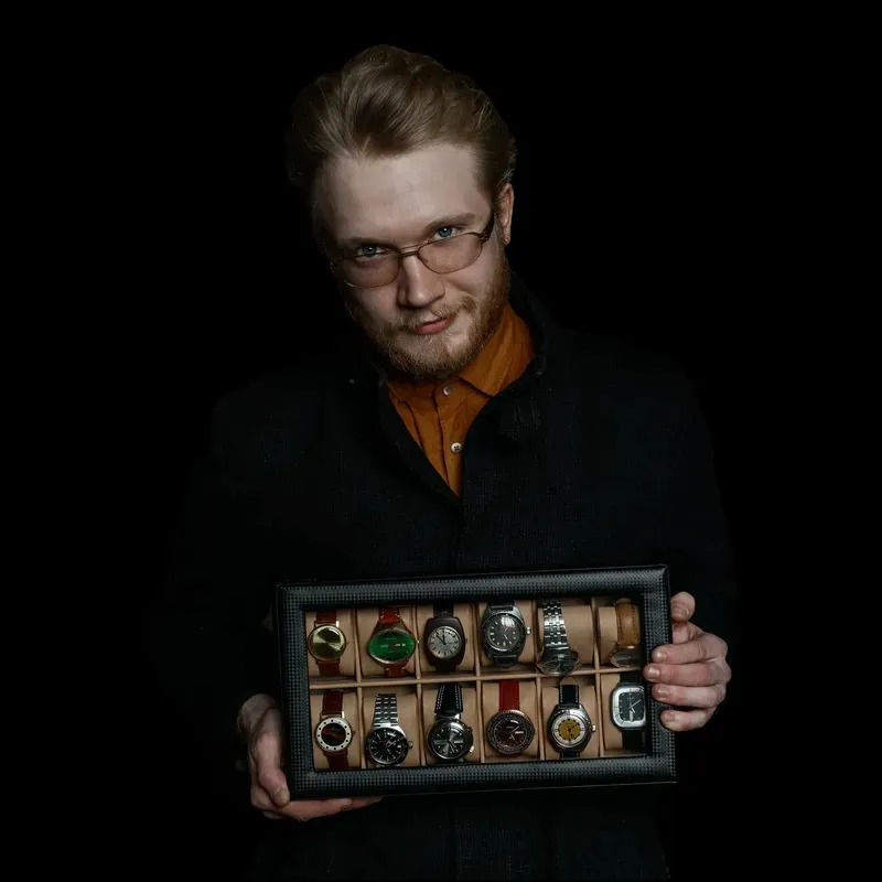 Александр Губин — его внук и куратор коллекции с 2017 года. Он вырос среди артефактов времени и воспринимает часы не как вещи, а как знаки культуры. Его подход — наблюдение, отбор, сохранение смысла.