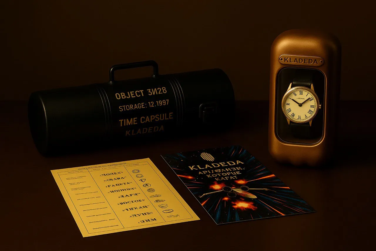 ➔ Каждый экземпляр в коллекции KLADEDA поставляется в капсуле, соответствующей духу времени. Оформление музейного уровня: дерево, металл, марки, подлинные документы. Всё напоминает, что внутри — вещь, достойная своей истории, отражающая силу эпохи.